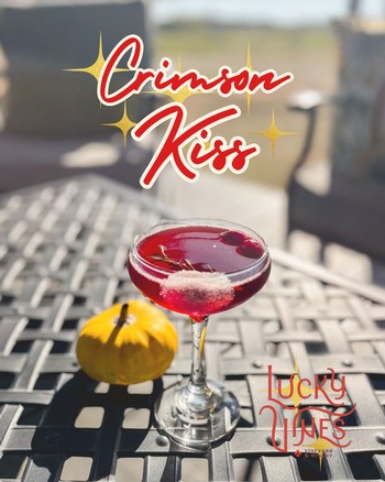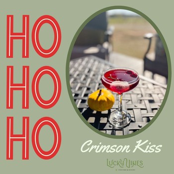 Our '23 Viola Dry rosé with cranberry, and grenadine, rimmed in sugar and kissed with red glitter and rosemary. A sparkling sip of holiday romance.